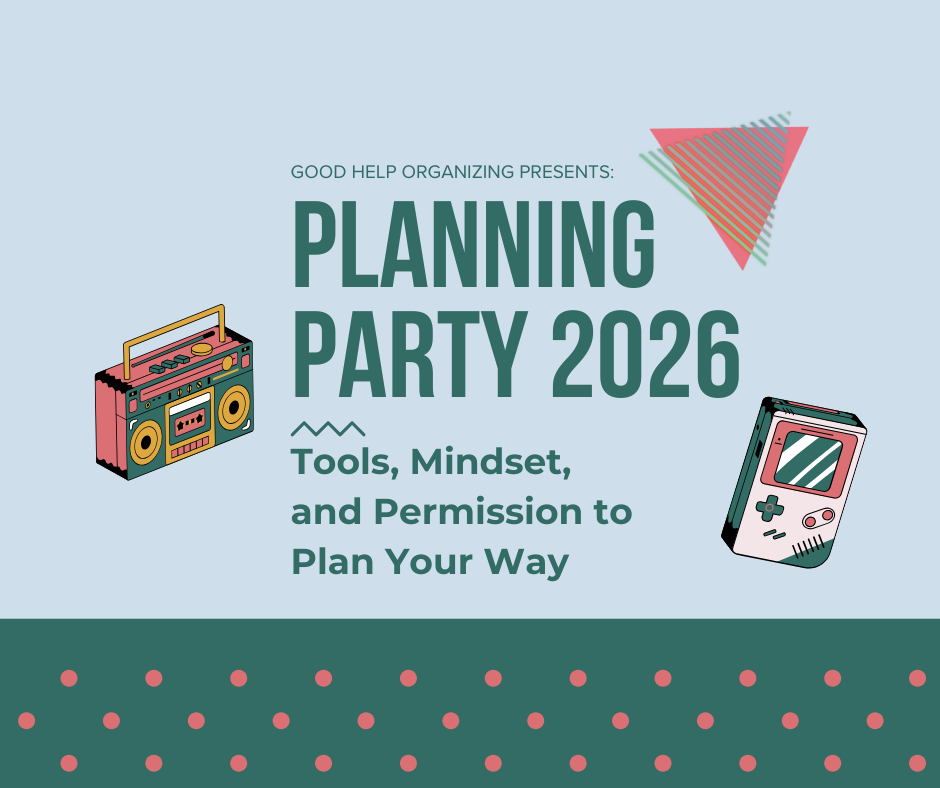 Spending some time evaluating your existing routines and systems can enhance your productivity, save you time, and create some mental clarity. If you’d like to set aside some time to do just that, consider joining us at the Good Help Organizing Planning Party. On January 17, we’ll be joining together with other like-minded women to talk all things planners and planning in a casual, friendly environment. We want to be ourselves, not productivity robots, but we also need to get stuff done!